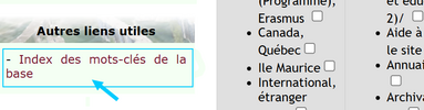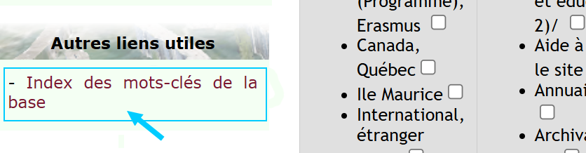 On peut consulter d’abord l’index des mots-clés : cliquer en bas à gauche